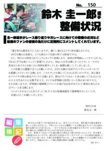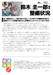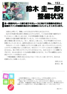 ★11/28鈴木圭一郎選手 最新整備状況 No.155★